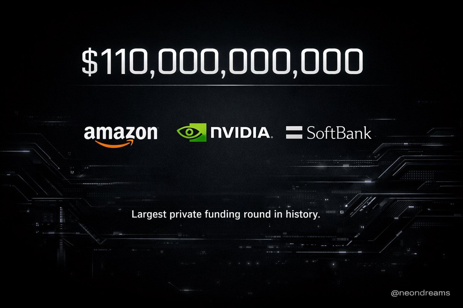 OpenAI closed the largest private funding round in history this week with $110B at a $730B pre-money valuation. The numbers are almost too large to be useful, so let's break down what actually matters.